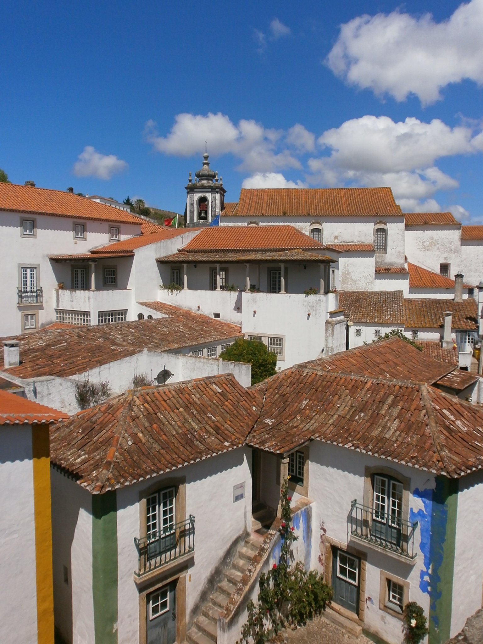 Doch leider fanden wir auch dort nicht das gewünschte wellenreiche Naturschauspiel des Ozeans vor, wohl aber einen idyllischen Leuchtturm am Ende der Halbinsel und einen traumhaft schönen Ausblick über den Atlantik Richtung Amerika. Danach peilten wir ein Städtchen im Landesinneren an und zwar das überaus bezaubernde Óbidos, das durch seine Stadtmauer begrenzt und eingezäunt ist und aufgrund der kleinen, weißen Häußer, der engen und verspielten Gassen den Anschein macht, von der Geschichte und den Veränderungen der Moderne nicht berührt worden zu sein.
